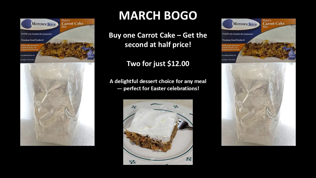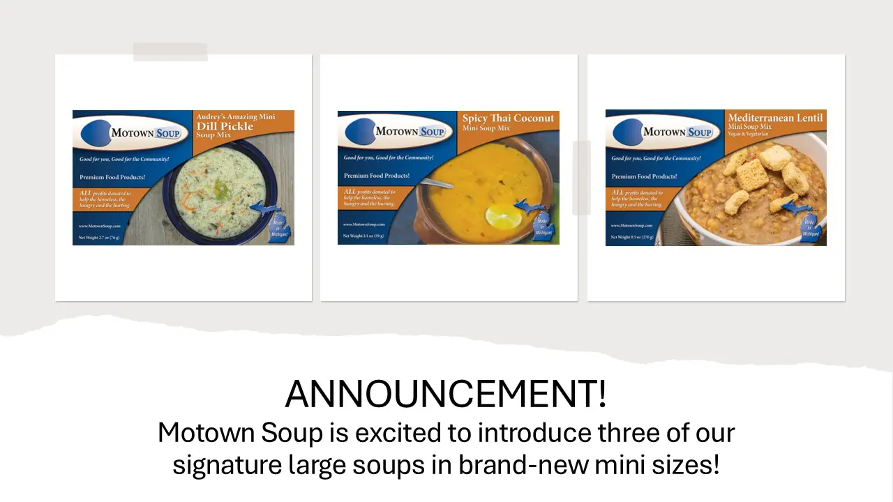 Your support of Motown Soup and our products truly makes a difference in the lives of the hungry, homeless and hurting throughout the State of Michigan.